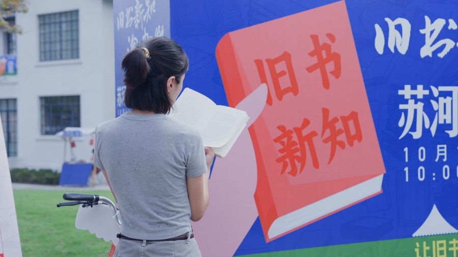 对许多年轻人而言,旧书市集不仅是一个买书的地方,更是一场融合了阅读、休闲与社交的复合体验。华东政法大学的钱同学特意从松江校区赶来,她认为旧书“有历史积淀,与书店里的新书感觉完全不同”。与她同校的张同学则被市集的整体氛围打动——除了淘到一摞心仪的小说,她还喜欢这里的文创产品、手冲咖啡、苏州河畔的风,以及市集上热情提供帮助的工作人员,“只有真正爱旧书的人,才会这样热爱这份工作吧”。